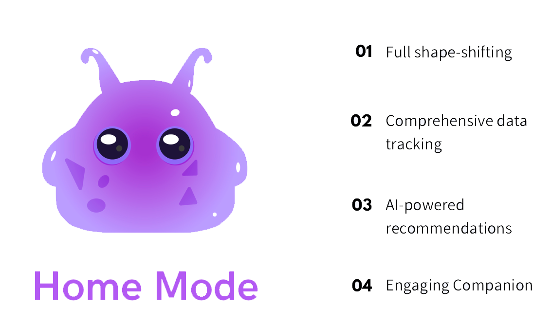 Prototype II of Huffle will focus on addressing questions from the first prototype by introducing customizable modes tailored to different environments and user needs. These modes allow users to set parameters for how Huffle communicates and presents data, enhancing the user experience. For example, "Public Mode" offers discreet functionality, "Sleep Mode" ensures silent operation, and "Active Mode" provides data for physical activity. By enabling users to switch between preset modes, Huffle becomes more versatile and user-friendly, offering personalized interactions without the overwhelm of unlimited transformations.